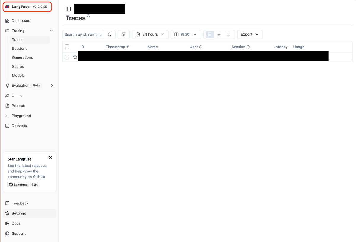 以上の設定が完了したら、https://YOUR_DOMAINにアクセスして、LangfuseUIにログインできたら成功です。 トレースなどができるか確認してみてください。
