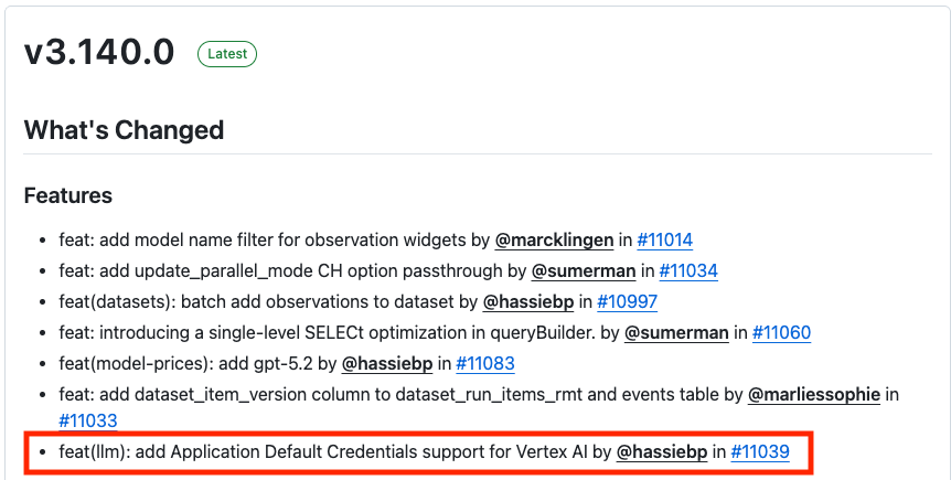 セルフホスト環境で Langfuse を使っていて、Vertex AI の認証に Application Default Credentials(ADC) を使いたかったのですが、その機能がありませんでした。AWS Bedrock には既に ADC 対応があったので、Vertex AI にも同様の機能を実装することにしました。
