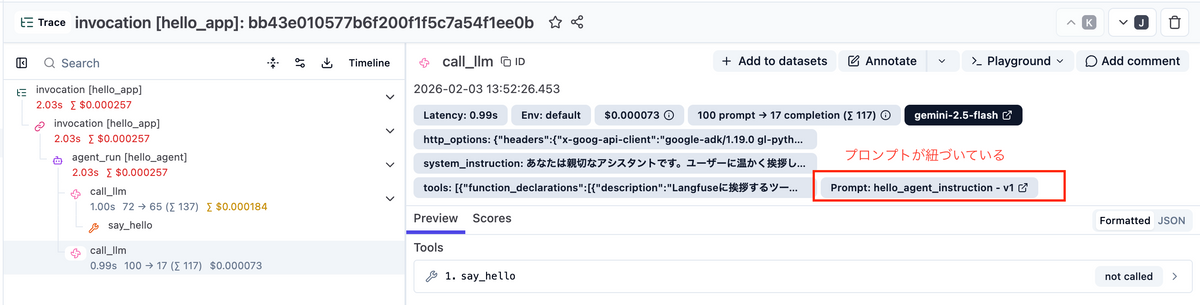 Google ADK(Agent Development Kit)のトレースに Langfuse のプロンプト情報を紐付ける方法を解説します。これにより、プロンプトごとのコスト・レイテンシ分析や A/B テストが可能になります。